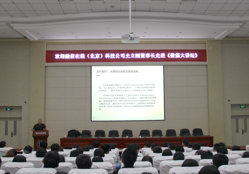 报告会上,史立刚董事长为大家讲解了大数据的概念、大数据时代的特征、商务智能等互联网+新形势下的技术热点,并通过一系列鲜明的行业案例,引导同学们将大数据等行业热点与自身专业的学习结合起来,思考规划大数据时代下的老员工活。整堂讲座干货十足、精彩不断。史立刚董事长睿智幽默、谆谆善诱,不仅开拓了同学们的专业视野、了解了新时期行业技术现状与走向,更对自身专业学习及未来发展深受启发。