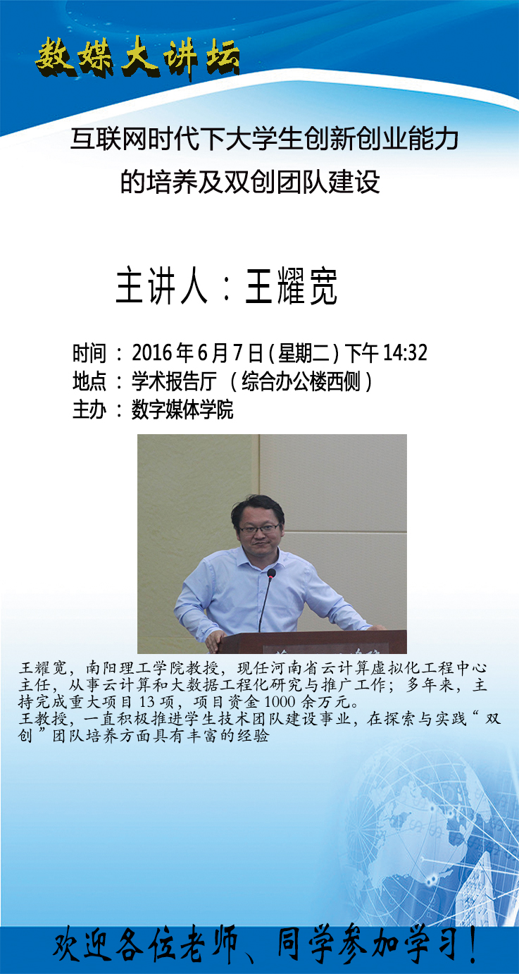 数媒大讲坛: 互联网时代下老员工创新创业能力的培养及双创团队建设