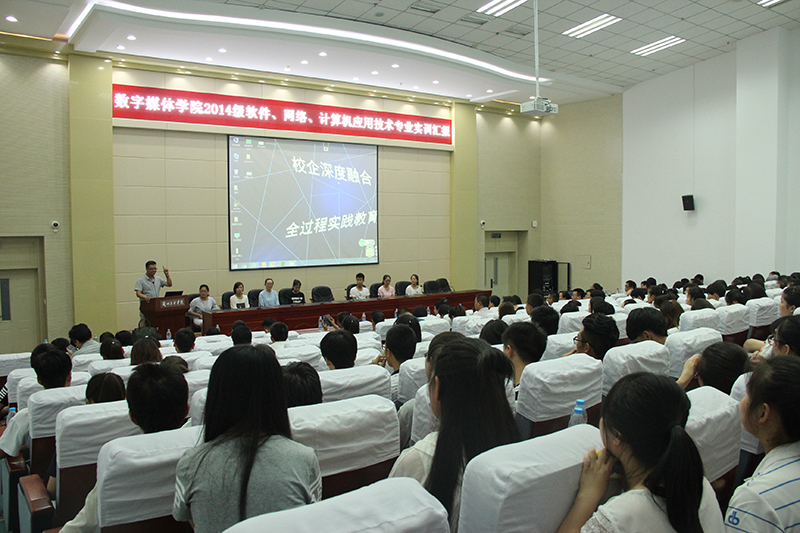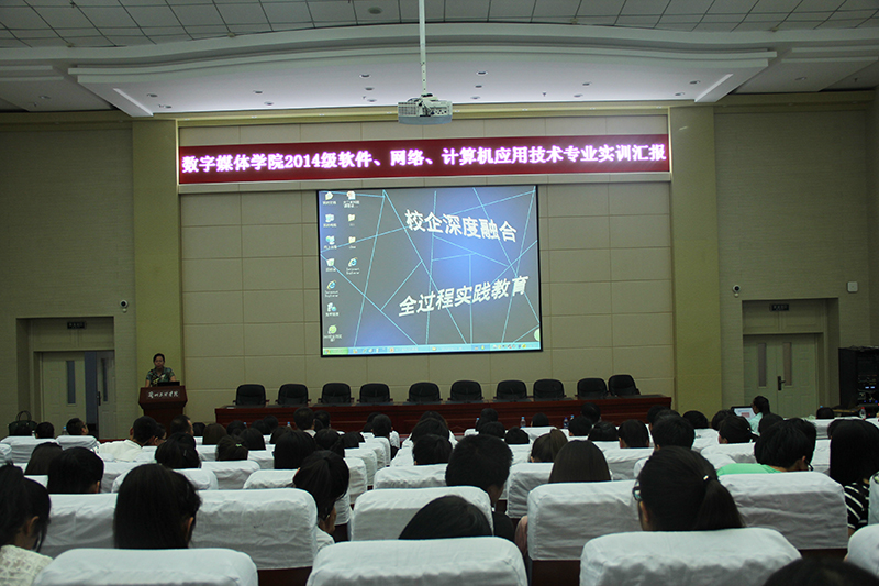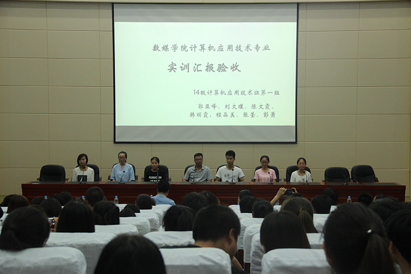 7月1日2026世界杯官网在学术报告厅举行2014级软件技术、网络技术、计算机应用技术实训汇报展示会,参加会议由教务处副处长张莉、胡建军、员工副处长魏嘉、学全院教职工和14级、15级员工参加了此次化实训汇报展示活动。