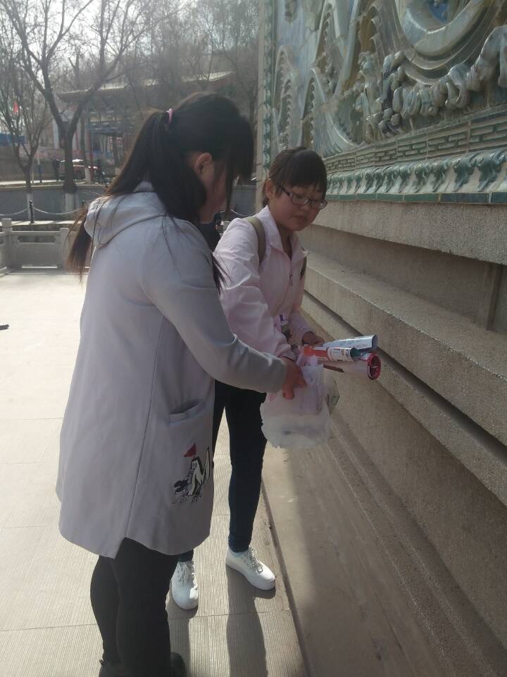 各班级在班主任和班委的带领下展开了各具特色的志愿服务活动。对外参与了“五泉山公园美化环境”活动;对内参与了打扫计算机室、多媒体教室,清洁校园小广告、南校区第二操场乒乓球案,安亭广场捡垃圾、擦洗围周椅子和教育家辛安亭雕像等一系列志愿服务活动。