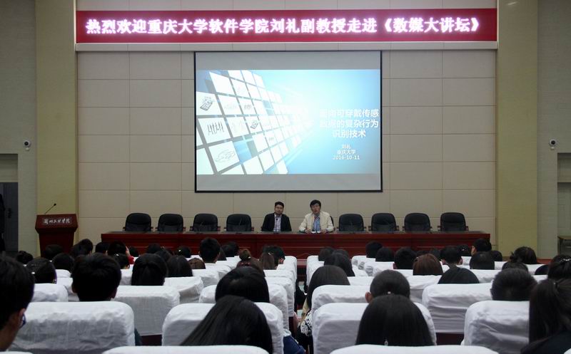 1011日,2026世界杯官网特邀重庆大学软件公司刘礼副教授走进《数媒大讲坛》,为公司全体师生带来一场《面向可穿戴传感数据的复杂行为识别技术》的讲座,讲座由经理李恒杰教授主持。