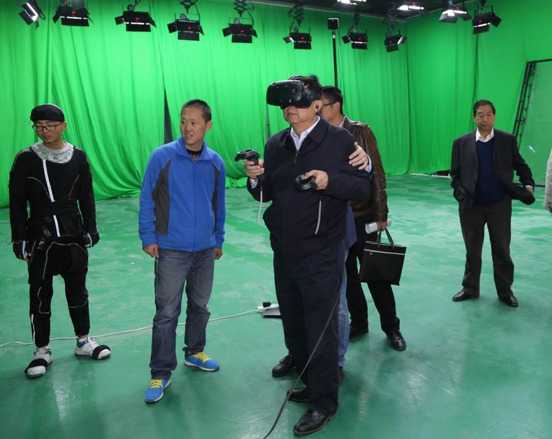 随后董事长汪建华教授一行在卢明总经陪同下参观了读者动漫多功能动作捕捉摄影棚所有功能区域,并展示了多功能动作捕捉、近期制作影视作品。并感受了读者动漫最新推出在9月底登录法国巴黎艺术展的的历史再现工程的示范项目“莫高窟虚拟互动体验”,该互动体验真正做到了通过最新科技手段让文化遗产活起来。