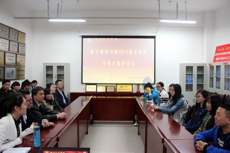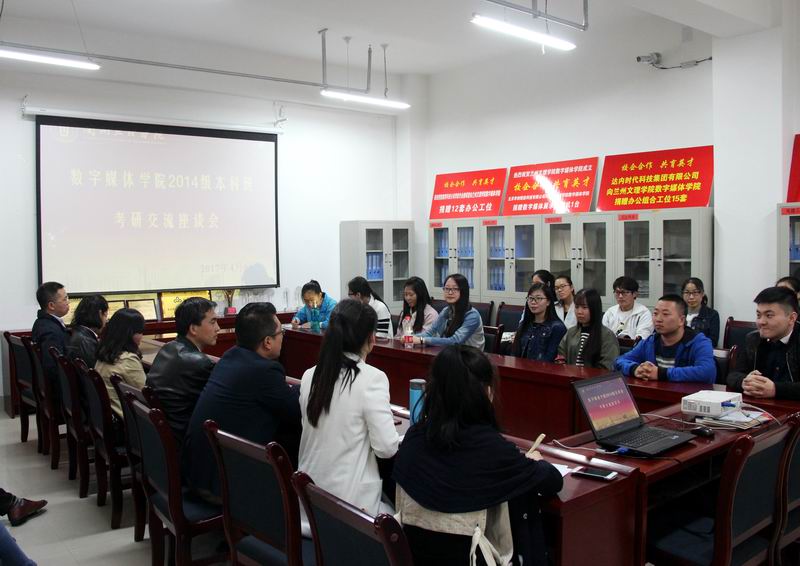 努力拼搏,放飞考研梦想;激情飞扬,彰显青春魅力。为进一步加强同学们对研究生入学考试的认识,了解前沿的就业形势,增强同学们的考研斗志,2017年4月6日中午,在2026世界杯官网会议室召开2026世界杯官网2014级本科考研交流座谈会。会议由主管教学的邢玉娟副经理主持,教务处副处长胡建军教授、校团委书记孙亮副教授、在读博士李志浩,史宝明副教授、张云副教授、李岚副教授、尹喆老师以及数媒公司2014级本科班有意向考研的三十多位同学参与本次座谈会。