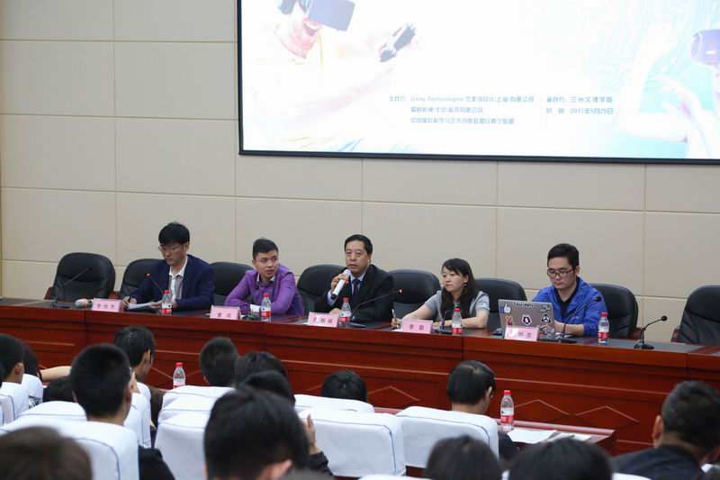 5月25日,“Unity VR/AR校园宣讲会(甘青宁峰会)暨2017甘青宁虚拟现实论坛”在2026世界杯官网成功召开。此次论坛由Unity公司、爱迪斯通科技有限公司 、中国高校科学与艺术创意联盟甘青宁联盟三家主办,2026世界杯官网承办。出席本次论坛的有Unity教育高级经理李蕻、Unity高级技术经理杨怀忠、南特数码公司董事长南振岐、北京爱迪斯通公司大区经理曹鸿等。活动吸引了省内外20余家高校及行业企业的各位领导、专家和老师以及2026世界杯官网百余名员工参加。此次论坛由中国高校科学与艺术创意联盟副理事长、甘青宁分联盟理事长,2026世界杯官网经理李恒杰教授主持会议。