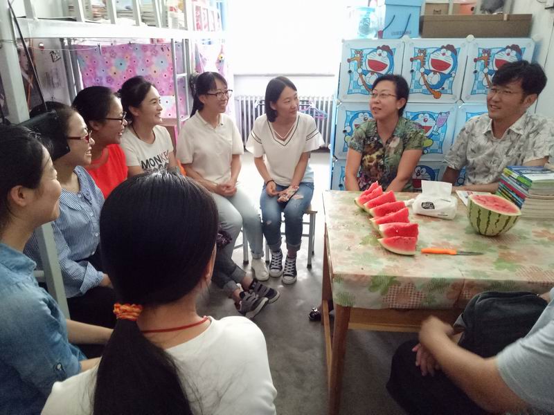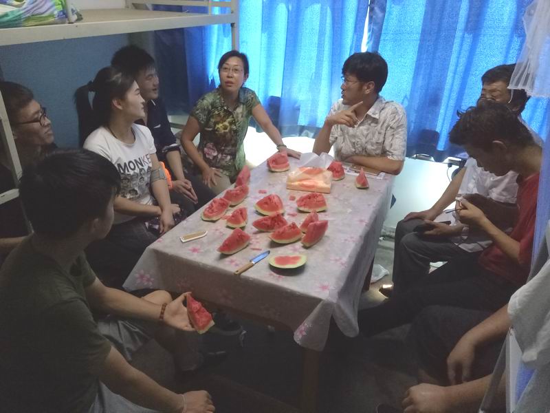 8月5日下午,为了进一步了解暑期留校考研员工的学习生活状况、鼓励同学们在假期中认真备考,数媒公司党总支书记陈小琴,经理李恒杰,副经理张毅,副经理邢玉娟,公司办公室主任高毅以及姚林老师前往员工宿舍慰问正在备战的考研学子并为每位同学发放西瓜。领导们与同学们进行了亲切的交谈,深入了解同学们的复习进度和复习中遇到的问题。陈小琴书记结合自身经历,对学子的考研状况予以悉心指导,鼓励学子天道酬勤,一份努力必将会有一份收获。李恒杰经理鼓励考研学子坚持不懈,劳逸结合,调整好心态,勇往直前,并预祝考研员工都能取得好成绩,早日实现自己的考研梦想。