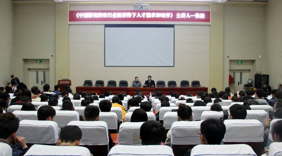 报告会上,张捷经理以企业角度出发,以诙谐幽默的语言风格,对近两年国内外上映的特效电影作了专业技术分析,从科幻、战争、剧情、仙侠、喜剧等各种类型电影中特效镜头的数量,以及近年来特效电影客观数据,深度解读了当前中国特效电影占比及票房情况分析,得出中国特效电影市场所存在的巨大人才缺口及良好的就业前景。并为同学们逐一总结分析了28个影视后期工作中常见岗位及相关技术,号召大家学习自己喜欢的岗位方向。随后与大家一同观看了Foundry技术参与特效电影经典片段和吉林艺术公司师生打造的优秀特效广告电影,鼓励同学们刻苦学习电影特效技术,为中国特效电影贡献力量。