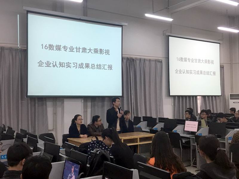 3月10日上午,数媒公司在实验室举行了“16级数媒专业甘肃大乘影视企业认知实习成果总结汇报会”。汇报会由甘肃大乘影视公司专家任俊杰先生主持,公司专业主任、班主任代表等相关教师参加了总结汇报会。在会上,各班员工代表展示了自己的实习实训成果,并且分享了实习实训过程中的心路历程。有位同学说到:“我很珍惜这次实习实训机会,因为通过这一周的实训,让我更加明确了自己的方向,以便在今后的学习中更加努力。很感谢数媒公司能提供这次实习实训机会,也很感谢老师的耐心讲解和陪伴,让我们发现了更好的自己。”