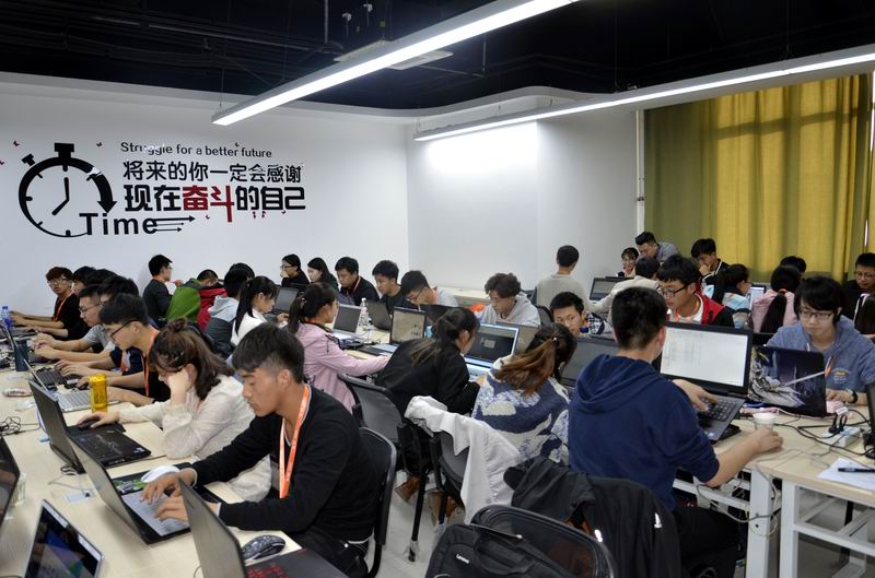 在企业认知实习的两周时间里,企业老师为了们讲解了软件行业发展情况及目前的用人需求,邀请了北京科蓝软件的HR总监给员工做《企业对人才需求》的讲座以及企业负责人做了关于《如何度过大学时光》的讲座,同学们受益匪浅。为了使认知实习的同学们对软件专业有一个初步的感知,企业专门派行业专家为软件工程本科专业员工讲解网页的相关知识,每天涉及一部分知识点进行讲解,同学们自己动手操作练习,在自己敲代码的过程中勤于思考,积极主动的向老师问问题。每天七点多起床敲代码,十二点开始下课,在短短两个小时的午休后,大家又投入了紧张的学习中,晚上两个半小时的晚自习,每个人都在独立的做着老师安排的作业,偶尔的说话声都是在讨论着自己的不懂之处。17软件班赵锦楠说道“这种生活是很累但是却没有一个人抱怨,反而越敲越充实,当自己独立的做出一个网页的时候,那种成就感不言而喻”。认知实习的第二周,同学们开始了自己的项目设计,分组进行项目讨论、分析、查阅资料以及代码编写、PPT制作。