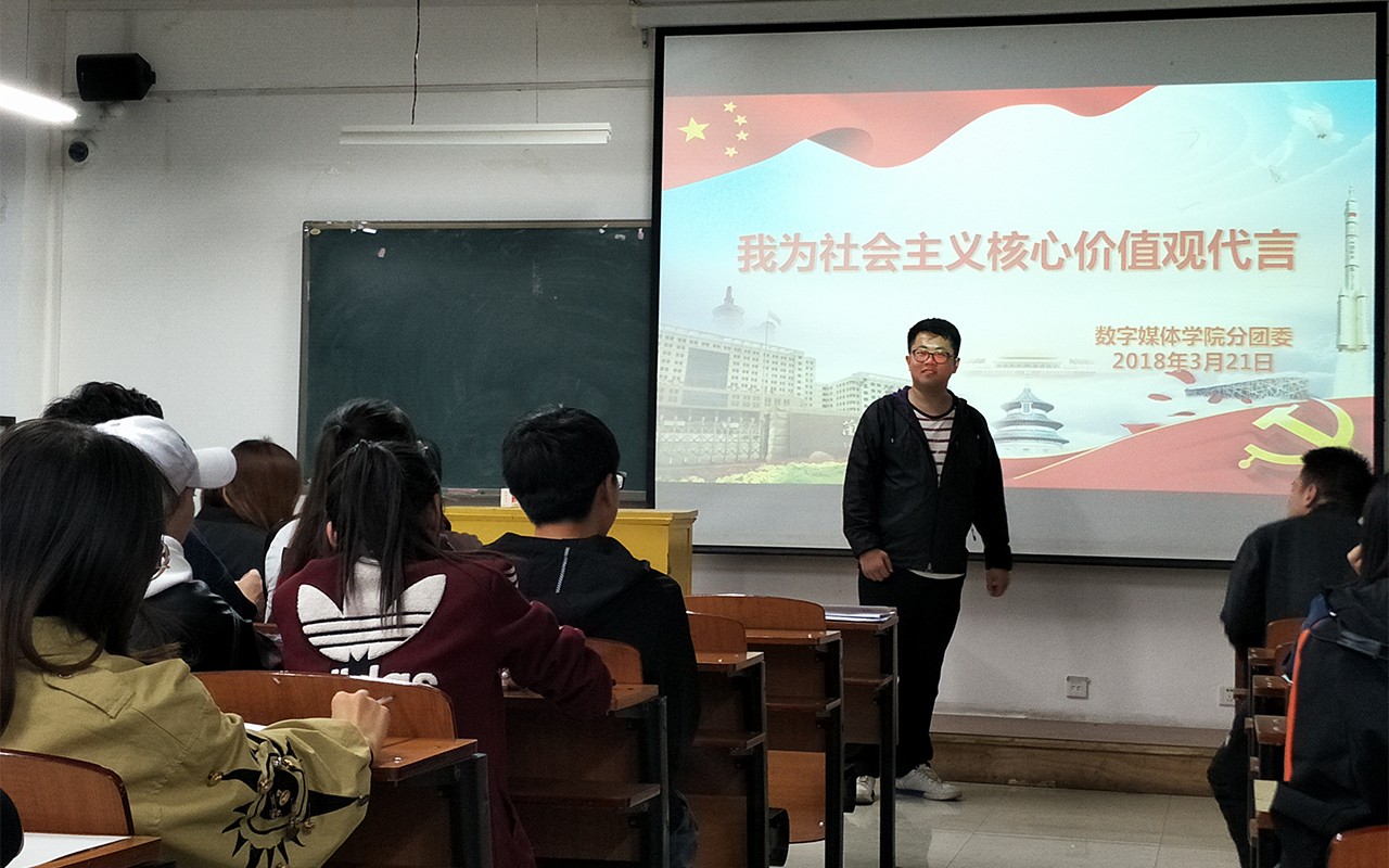 3月21日晚,2026世界杯官网分团委在2-302教室举办了“我为社会主义核心价值观代言”系列活动之理论学习讲座,参加此次讲座的有17级全体同学,讲座由分团委副书记王海洋同学主讲。
