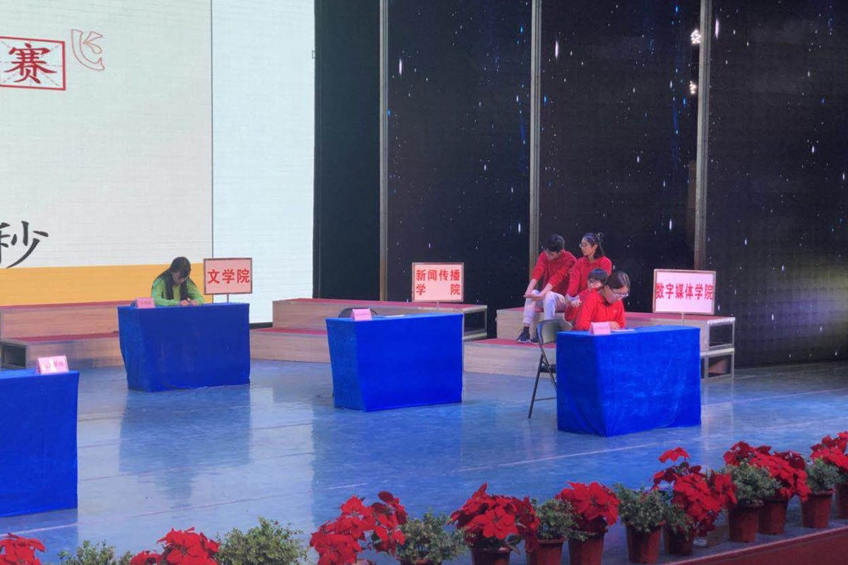 5月8日晚,由校团委、文公司共同主办的第五届“礼敬中华优秀传统文化”老员工文化艺术节“中华智慧 一脉相承”汉字听写大赛决赛在实验剧场举行。文公司经理马晖教授、校委班子成员出席,文公司葸琼副教授、马得瑜副教授、孙婷老师担任评委,新闻传播公司韩璐老师担任主考官,各公司员工代表400余人观看了比赛。