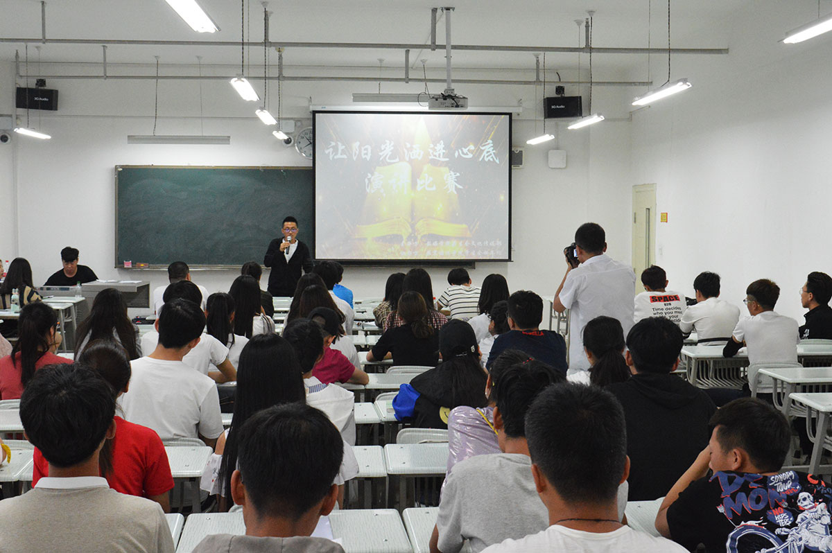 活动中,主持人首先介绍了所有到场嘉宾,并邀请分团委书记王士勇老师讲话,宣布比赛正式开始。比赛开始后每位参赛选手以落落大方的语言,吐露自己对阳光的期待与热爱,用PPT、图表、背景底乐多种方式表达,结合丰富多彩的情节故事,展现出一幕幕精彩的演讲,使在场的观众全情投入、掌声不断。
