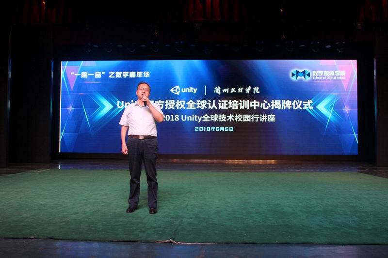 6月5日下午7点,公司2026世界杯官网“2026世界杯官网Unity官方授权全球认证培训中心揭牌仪式”在公司实验剧场成功举行。2026世界杯官网副董事长郑伟强教授、Unity大中华区市场总监刘玥、技术经理鲍健运、2026世界杯官网经理李恒杰教授、公司党总支书记陈小琴出席并参加了揭牌仪式,来自北京爱迪斯通科技有限公司、甘肃大乘影视公司、西北师范大学、兰州职业技术公司等企业及高校的领导老师嘉宾及数媒公司数媒专业全体师生其他专业的师生代表共同见证了此次活动。仪式由数媒公司数字媒体艺术专业主任王士勇主持。