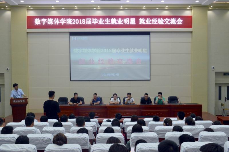 参加本次交流会的就业明星代表分别为公司14级数字媒体技术三班王虎、胡杰、兰鹏飞、康恺、王浩东等五位同学,他们分别成功就业于北京、南京等地,从事影视后期、虚拟现实、大数据开发、网络运维等方面的工作。