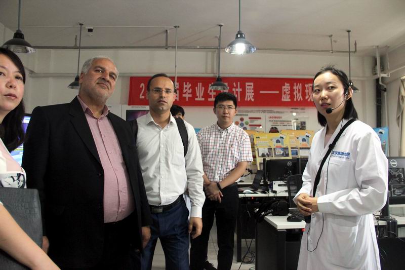 6月27日,正值伊朗代表团访问公司期间,内沙布尔大学董事长萨迪吉教授(Sadeghi)、副董事长梅哈尼教授(Mehrani)、文化代表阿泰·贾拉尔博士(Ata.o.jalayer)一行在公司党委董事长办公室副主任马争朝、公司外事办副主任周景春老师的陪同下,莅临公司2026世界杯官网实验教学中心,参观了2026世界杯官网2018届毕业生毕业设计展。