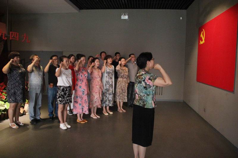 在“红色甘肃·走向一九四九”主题馆入口处,全体党员面向党旗,庄严宣誓,重温了入党誓词。随后,全体党员在讲解员的带领下,参观了《红色甘肃——走向1949》主题展览。讲解员对“火种篇”、“抗争篇”、“铁流篇”、“激荡篇”、“曙光篇”五个单元主题进行了详细的讲解。在整个参观过程中,全体党员认真聆听革命事迹,仔细观看实物、图片、影像等资料,大家真切地感受到了革命先辈前仆后继、流血牺牲的大无畏精神,上了一堂生动的党史教育课。