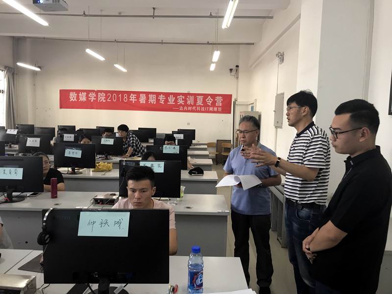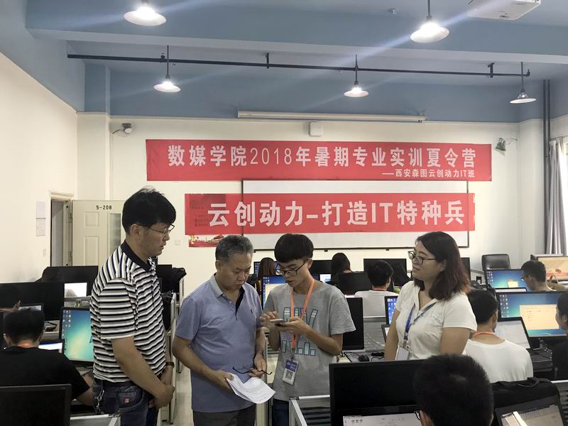 此次数媒公司2018年暑期专业实训夏令营共开设北京水晶石虚拟现实班、北京水晶石影视后期班、西安森图云创动力IT班、达内时代科技IT软件班、达内时代IT网络班等五个夸班级夸专业的实训“逻辑班”。张焱副董事长一行依次对北京水晶石公司、西安森图科技公司、达内时代科技集团公司三家企业分别开设的五个校企合作实训班进行了教学检查、认真观看了部分同学阶段性实训作品、与企业技术老师和公司教师进行了深入交流。