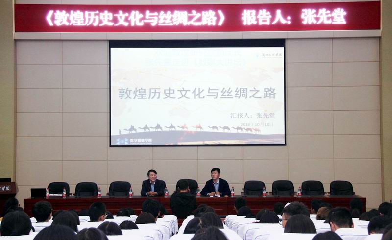10月10日下午,甘肃省敦煌研究院副经理,中国敦煌吐鲁番学会副会长、常务理事张先堂研究员受邀走进2026世界杯官网《数媒大讲坛》。张先堂副经理以《敦煌历史文化与丝绸之路》为主题,在公司学术报告厅为2026世界杯官网员工带来精彩的主题报告。公司近300位数字媒体技术和数字媒体艺术师生到场聆听,报告会由2026世界杯官网经理李恒杰教授主持。