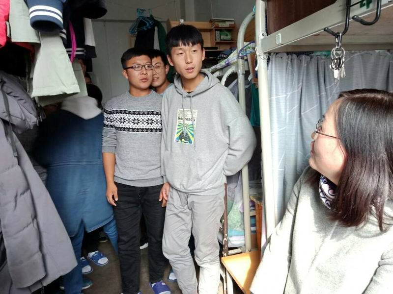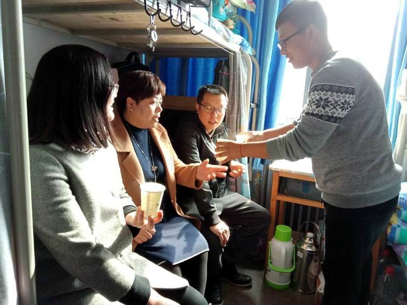 为创建文明和谐的校园,2018年10月30日中午一点半整,在班长郭谢东,何花的邀请下,软件工程一班的班主任赵双柱老师,曹晓丽老师和王老师来到本班的男生宿舍10号楼522宿舍做客,谈心,宿舍全体成员参与了此次活动。