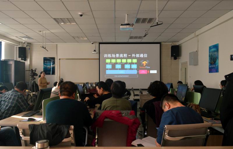会上,邢玉娟副教授首先分享了自己在说话人识别方面的研究成果,主要介绍了语音特征提取、模型构建和模型检测等。紧接着,黄珍副教授介绍了基于深度学习的unity虚拟人机对战系统,该系统主要基于unity平台,采用改进深度学习TensorFlow框架和近端优化策略(proximal policy optimization)训练虚拟游戏模型,使得模型具有更高的灵活度,进一步优化了人机对战的体验。王万军教授根据多年从事不确定性理论研究的经验,介绍了不确定信息处理的相关算法。张成文副教授介绍了虚拟现实、全景拍摄、虚拟旅游以及更加深层次的交互方式。王士勇老师也对自己这一年的科研和工作做了总结,对各位老师表达了新的一年的祝福和期许。谭萍副教授介绍了员工项目“文理小袋鼠”小程序。