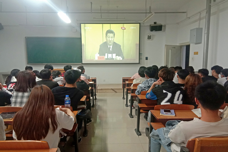 首先观看了习近平总书记在纪念五四运动一百周年大会上的讲话视频,播放期间同学们认真观看并深刻学习习近平总书记对青年的重要讲话。视频结束,全体团员进行了半小时的激烈小组讨论。在小组的讨论之后,各位团员踊跃发言一致认为,作为新时代的新青年,我们应该努力学习专业知识来提升自己,积极参加各项活动来锻炼自己,紧跟党的脚步积极向党组织靠拢。