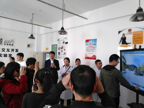 下午14:00,在李恒杰经理的陪同下,出席此次论坛的各位领导和专家参观了公司数字媒体实验中心、甘肃大乘影视校企合作实训基地、甘肃读者动漫校企合作实训基地、国家级众创空以及创新创业员工工作室等,观看了公司员工的获奖作品和实训作品。各位领导和专家亲身观摩和体验了师生创作的虚拟现实、影视后期、游戏动画作品,对公司实验室建设和员工作品表示高度赞赏。