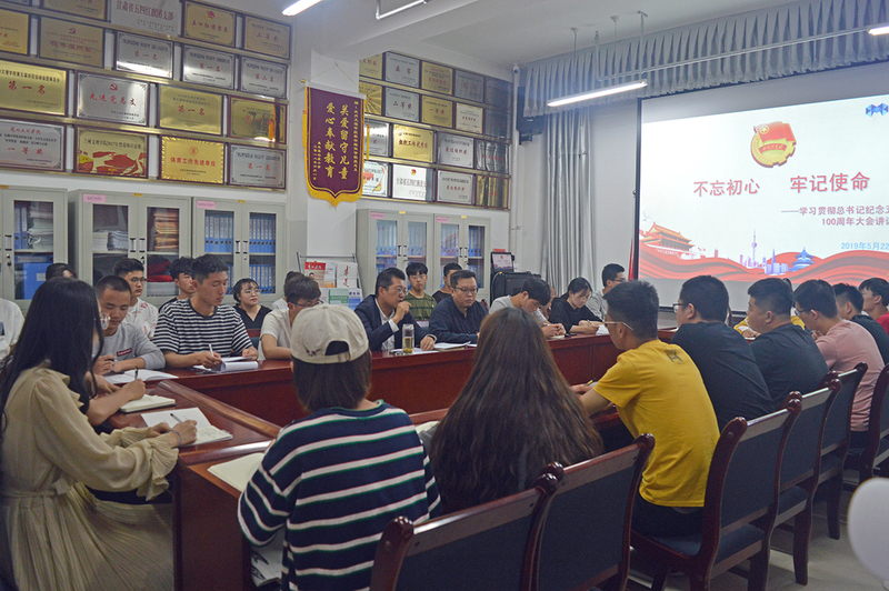 接着,孙亮书记以习近平总书记在纪念五四运动100周年大会上的讲话为契入点,要求全校员工干部以身作则、树立榜样、积极主动为广大同学服务,充分发挥桥梁纽带作用。重点指出青年一代要紧跟时代的脚步,听党话、跟党走,担负起实现中华民族伟大复兴的重任;青年一代也要把住自身成长的规律,学习丰富的知识,练就过硬的本领;青年一代更要树立远大的理想,使永久奋斗成为青春最亮丽的底色。最后孙书记与同学们一起分享了自己学习习近平总书记对青年朋友提出的“六个要”的讲话精神,希望同学们在实现中华民族伟大复兴的这场接力跑中跑出一棒又一棒的好成绩。