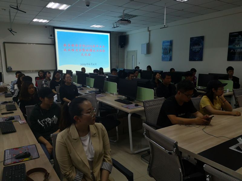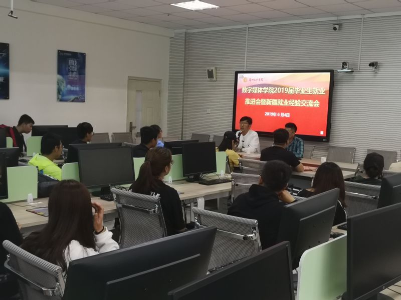 会上,姚林主任首先通报了目前公司2019届毕业生就业现状,他强调全体毕业生务必从思想上高度重视自身就业工作,倡导毕业生积极理性就业。此外,姚主任详细解读了高等公司毕业生签约及派遣信息中的有关政策,现场回答了同学们切身相关的就业困惑。随后,李恒杰经理结合日前为期一周对新疆政府与企业的考察访问经历,对全体毕业生作了就业动员讲话,他指出:“就业是民生之本,大美新疆,大有可为。新疆地大物博,近年来,在党和国家的大力支持下,经济活力强劲,各项政策利好,急需大量相关人才,同学们要立足实际,合理选择适合自己的工作,先就业再择业,早日为祖国边疆地区的发展贡献力量”。随后,李经理现场连线了公司赴新疆工作2018届优秀毕业生代表谢凡(现任和田市热瓦克阿勒迪社区党支部副书记兼居委会主任)和苟志强(现任达内集团院校经理),二位学长结合个人自身经历,从地理位置、工作环境、薪资待遇以及人文关怀等四个方面实事求是的介绍了新疆目前的发展状况,表示在未来的发展进程中数字媒体技术会越来越受到重视,公司毕业生在新疆一定会大有可为。通过和学长们良好的互动和充分的沟通后,公司毕业生纷纷表达了有志青年要到边疆去,到祖国最需要的地方的强烈意愿。