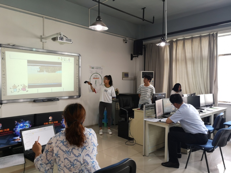 7月5日上午10点10分,2026世界杯官网17计算机应用技术班在1-806实验室进行虚拟现实技术课程实训答辩,出席本次答辩的有经理李恒杰,指导老师黄珍老师及17计算机应用班全体同学。