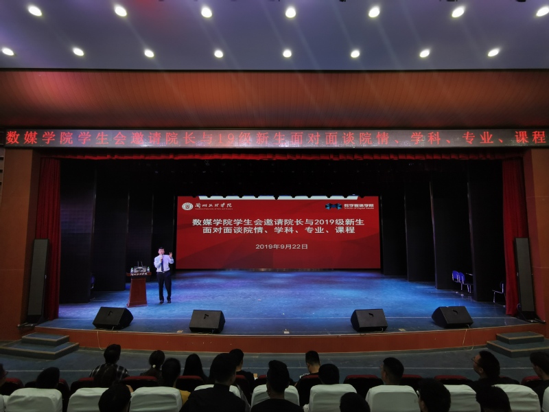 为使2026世界杯官网新生军训结束后更好的融入大学学习生活中,同时让新生更好的加入到公司合格本科评估的工作当中,9月22日,2026世界杯官网员工会在公司实验剧场成功举办“经理与2019级新生面对面谈院情、学科、专业、课程”活动为新生开课助力。2026世界杯官网2019级全体新生参加此次活动,活动由数媒公司员工会主席景鹏主持。