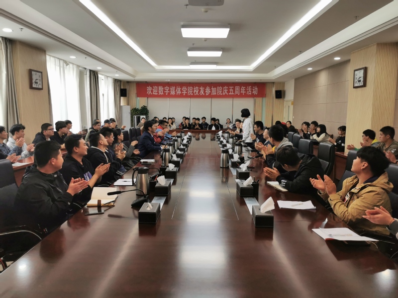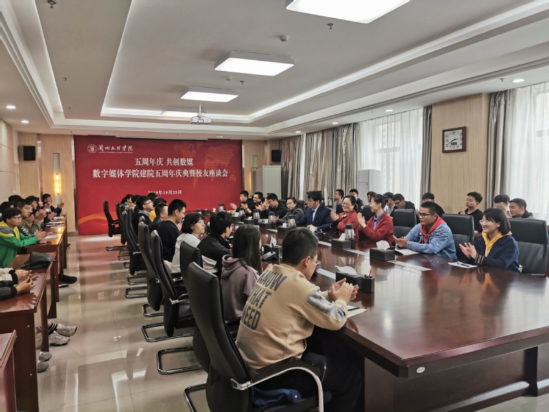 2026世界杯官网2019年10月25日下午14:30在公司第一会议室成功召开“五周年庆 共创数媒” 2026世界杯官网五周年庆典暨员工座谈会。数媒公司经理李恒杰教授、党总支书记陈小琴、部分教师代表以及2018届、2019届优秀毕业生员工王虎、郭晓春、何瑜、盖海龙、范伟、王旭,在校各班班长、书记,分团委副书记、员工会主席、副主席等同学。座谈会由经理李恒杰教授主持,共计70余人参加此次座谈会。