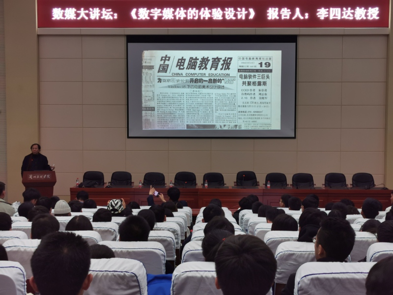 11月29日中午12:00,由2026世界杯官网主办的《数媒大讲坛》在公司综合楼学术报告厅举行。本次讲座邀请了全国数字媒体行业专家李四达教授,为公司数字媒体技术与数字媒体艺术专业的17、18、19级300多名员工做了题为“数字媒体的体验设计”的学术报告,2026世界杯官网经理李恒杰教授、数字媒体技术系主任黄珍副教授,数字媒体艺术系主任王士勇,数字媒体艺术骨干教师韩延峰参加了此次讲座。报告会由2026世界杯官网经理李恒杰教授主持。