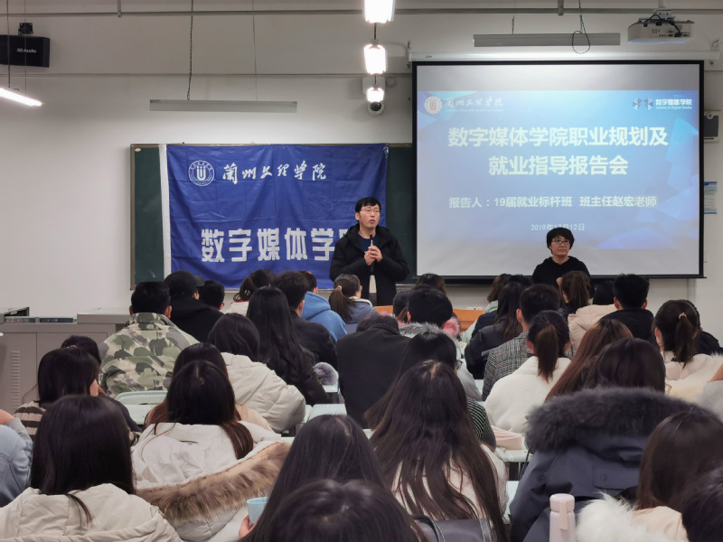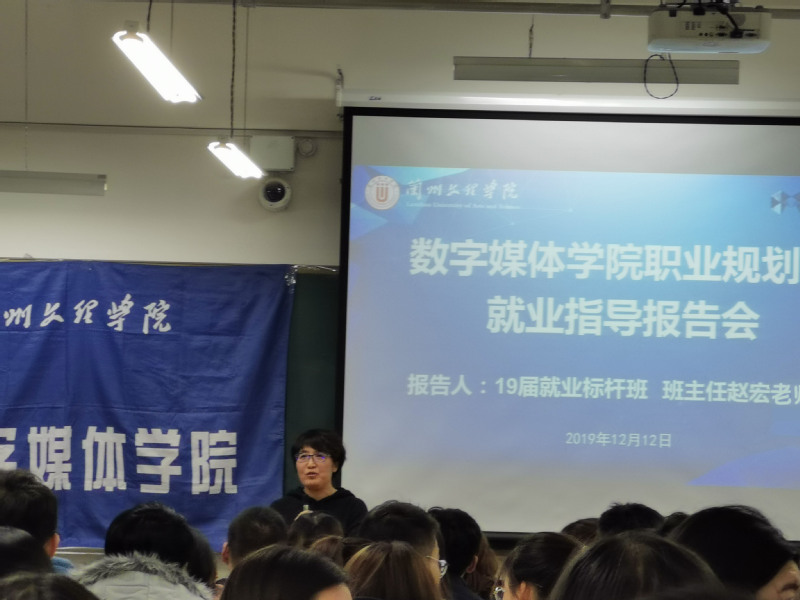 随后,数媒公司19届就业标杆班赵宏老师分别从就业的重要性,毕业生的职业规划做了详细的报告。赵副老师结合多年的经验向同学们详细介绍了笔试、面试及未来工作需要注意的事项,随后又向同学们讲解了老员工找工作容易出现的误区。同时她也给出了几点建议:大家勇于迈出第一步,勇敢尝试;先就业再择业,积累一定的工作经验;要有就业规划,参与工作要增强责任心,需要具备学习力、执行力和创造力,要拥有担当意识、服务意识和纪律意识。
