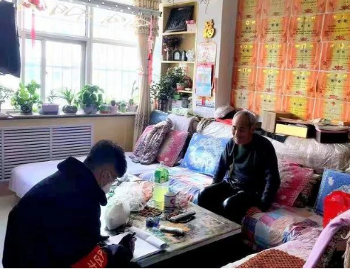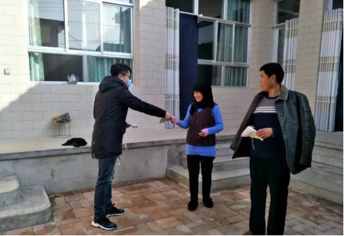 图翟如渊作为社区网格员进行入户宣传