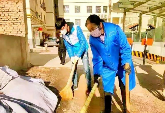 图翟如渊参与打扫社区院子并消毒活动
