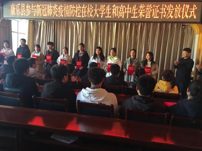 图 翟如渊同学参与康乐县举行参与疫情防控在校老员工和高中生荣誉证书发放仪