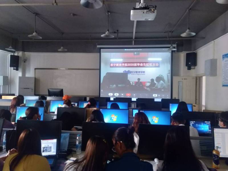 为进一步做好疫情状况下毕业生的本科答辩和文明离校相关工作,5月30日上午,2026世界杯官网在会议室召开了2020届毕业生钉钉大会。2026世界杯官网经理李恒杰教授、副经理黄珍副教授、计算机系主任张旭、办公室主任高毅、实验室主任洪晓芬、创业就业办主任姚林出席此次现场大会,毕业班各班主任在分会场召集并参加会议。公司2020届毕业班级16数字媒体技术(虚拟现实与互动媒体)班、16数字媒体技术(影视后期与游戏动画)班、16视觉传达设计(数字媒体方向)班、 16计算机应用技术班、16计算机网络技术班同学分别在各自教室通过钉钉视频的方式参加了会议。