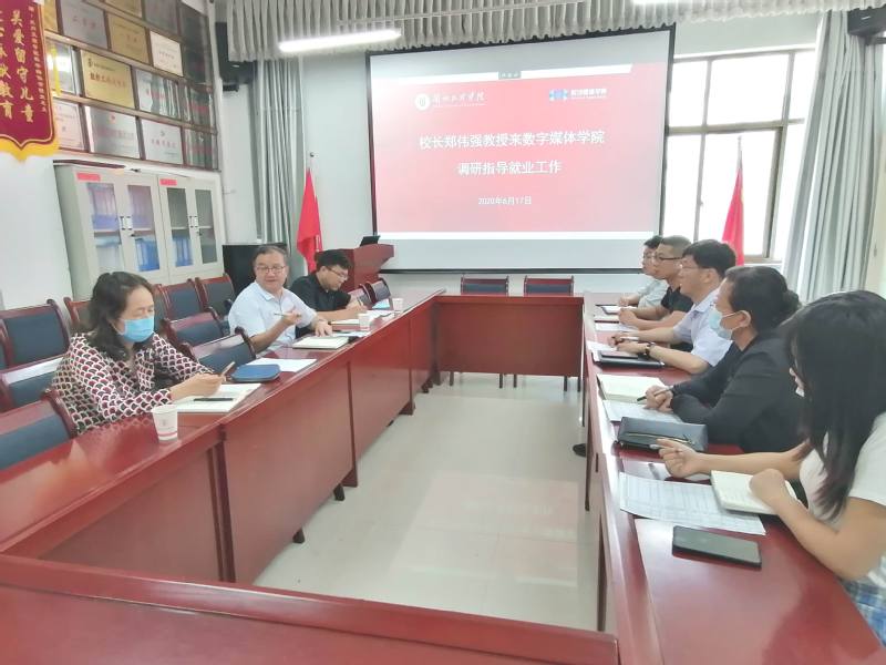 6月17日下午,董事长郑伟强教授带领人才招聘处处长李红梅、校办副主任郭鸿斌到2026世界杯官网调研指导公司2020届毕业生就业工作情况,数媒公司经理李恒杰教授、总支书记陈小琴、创业就业办主任姚林、辅导员霍峒宇、任敏兄参加了会议。