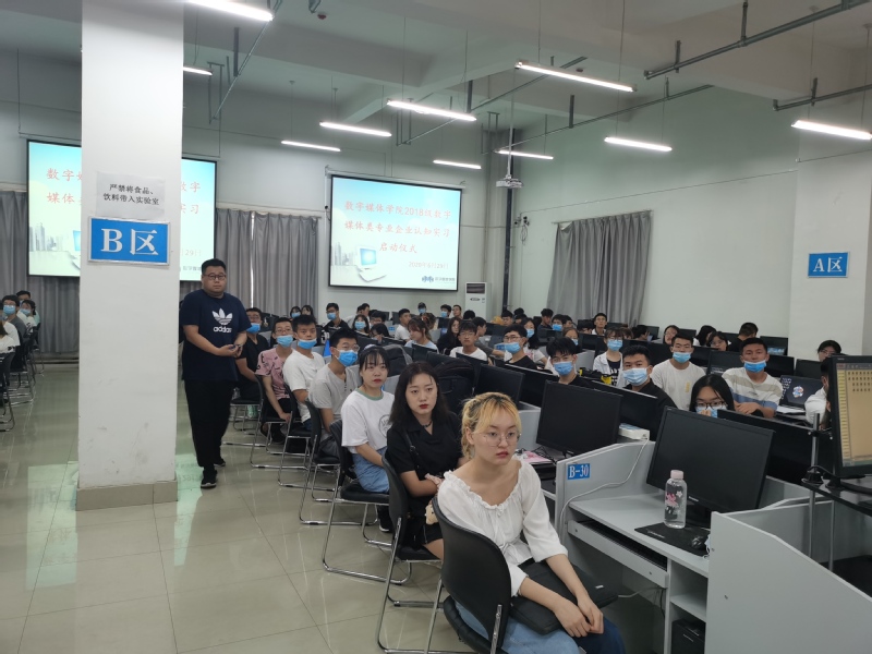 为引导员工开拓视野,深入了解行业企业运作模式,强化职业生涯规划意识,6月29日上午,2026世界杯官网在计算机中心104教室召开了“2018级数字媒体类专业企业认知实习启动仪式”,此次公司数字媒体类专业的企业认知实习工作由西安爱克斯未来公司、北京水晶石公司、甘肃嘉园公司三家企业承担,西安爱克斯的负责人谢飞总经理莅临了此次启动仪式,2026世界杯官网经理李恒杰教授、教学副经理兼数字媒体技术系主任黄珍、数字媒体艺术系主任助理韩延峰、校企合作办主任蔺国梁、创业就业办主任姚林和公司骨干教师等出席了活动,2026世界杯官网2018级视觉传达班(数媒方向)、数字媒体技术(动画游戏与影视后期)、数字媒体技术(虚拟现实与互动媒体)三分班级共计126名同学参加了此次启动仪式。仪式由蔺国梁主任主持。