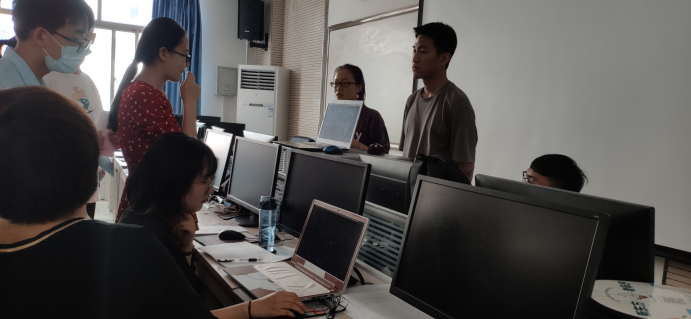 报告会上,同学们一小组为单位,分别进行了项目答辩,曹晓丽老师以及点评小组对同学们的作品也进行了点评。虽然中途出现意外断电的特殊情况,但同学们并未停止作答,而是以录屏及文档等形式的解说,向大家展示了自己的作品。