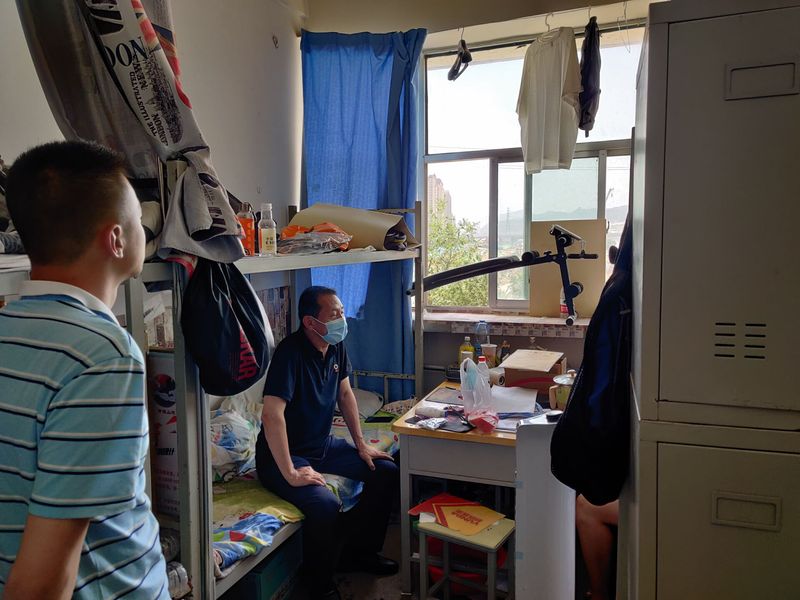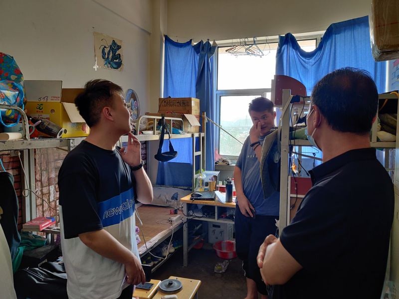 为了做好毕业生安全、文明、有序离校工作, 7月2日下午,2026世界杯官网团学办主任荆波,分团委书记霍峒宇,辅导员任敏兄以及员工会干部一行前往毕业生宿舍开展走访活动。