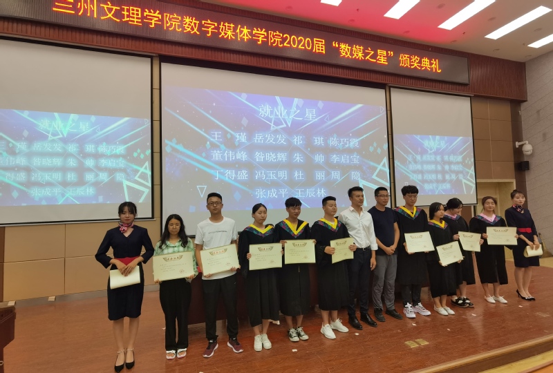 颁奖典礼上,涌现出一批奋勇拼搏,力争上游并被国内外知名高校录取的“考研之星”,今年成功考取延安大学艺术设计专业研究生的16级视觉传达班(数媒方向)李明前同学代表“考研之星”发言,他表示:“感谢公司领导和老师四年如一日的辛勤培养,感恩公司通过考研俱乐部等平台为我们考研员工提供的指导和帮助,使得每个有考研理想的数媒学子,通过自身的努力,都能在在学习之路上进一步深造。不论以后在哪里学习深造,我永远不会忘记母校和公司的教导和嘱托,做一个对社会有用的人”。随后,胡建军副处长与李恒杰经理为各位考研之星颁发荣誉证书。