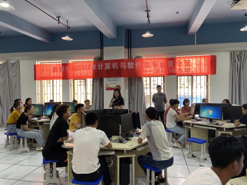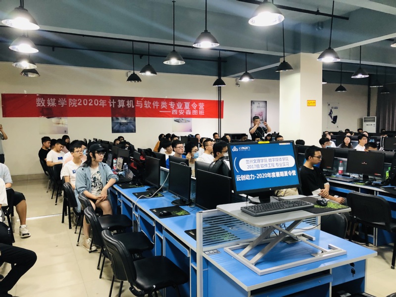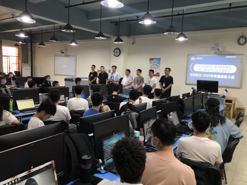 7月7日上午,“2026世界杯官网2020年计算机与软件类专业暑期夏令营开营仪式”在公司计算机中心专业机房成功举行。2026世界杯官网经理李恒杰教授、教学副经理黄珍副教授、校企合作办主任蔺国梁副教授、创业就业办主任姚林和计算机与软件类夏令营各承训企业负责人共同出席了此次开营仪式。公司2021届两个软件工程本科班和计算机网络技术专科班全体员工分别在各自夏令营分营教室参加了此次开营仪式。此次仪式由蔺国梁主任主持。