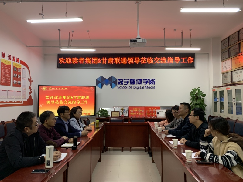 座谈会上,李恒杰经理首先对读者集团及甘肃联通各位领导的到来表示热烈欢迎和诚挚感谢,并高度赞扬了读者出版集团对于甘肃出版行业的思想引领和文化支撑所做出的杰出贡献。随后李经理对公司的历史发展、团队建设、专业设置、校企合作、办学理念等基本情况进行介绍。李经理强调公司专业建设与发展离不开校企合作,公司与读者出版集团要不断深化在文化及数字媒体等领域的交流,增进双方相互了解,为双方的未来合作奠定良好基础。