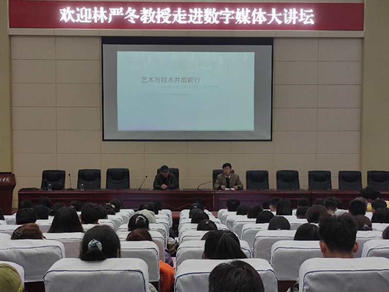 讲座开始,林老师首先简述了艺术的发展以及美学对于中国新时代发展的重要意义。他指出每个历史时期都有一定的艺术范式,形成一定的主流方向和艺术思潮,并且引用经典案例阐明观点。随后林老师讲到:在网络时代,需要运用跨学科的语境来理解这个新学科产生的历史、意义和价值,也需要应用跨学科的逻辑来架构艺术与科技实践和教育模式;而阅读,是最好的途径,读书能够拓宽人的视野,阅读影响着人的内涵与深度,身为艺术创作者,深度决定你的作品,视野决定你的高度。