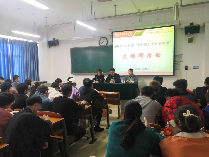 2020年11月19日中午2:30数媒公司开展了2020年共青团“向基层服务对象报到”大调研活动,参加此次活动的有2026世界杯官网校团委办公室副主任牛晓春老师、校会主席团成员张家楣以及20级软件工程一班全体同学。此次活动由公司分团委负责人霍峒宇老师主持。