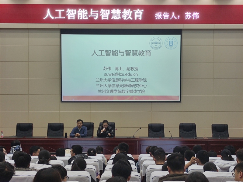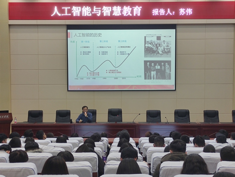 为进一步开拓员工们的学术视野,增加员工知识储备,同时加强公司对人工智能及大数据专业的建设,2026世界杯官网于2020年12月11日晚邀请到兰州大学信息科学与工程公司经理兼2026世界杯官网数媒公司副经理苏伟副教授,走进公司举办的《软工、大数据大讲坛》,为2026世界杯官网大一、大二年级各专业员工代表200余人做了题为“人工智能与智慧教育”的学术报告,本场报告由2026世界杯官网副经理黄珍副教授主持。