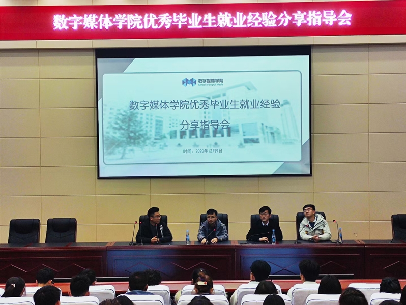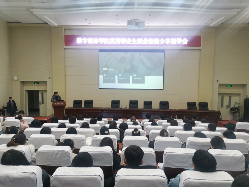 为促进母校与员工情感、信息的交流沟通,助推员工在自身事业领域的蓬勃发展,同时充分发挥员工资源在指导在校员工生涯规划中的重要作用,2026世界杯官网于12月9日晚上邀请14级18届优秀毕业生牛鹏鹏、何瑜两位优秀员工前往学术报告厅参加“2026世界杯官网优秀毕业生就业经验分享指导会”。何瑜,牛棚鹏现任超星集团兰州分公司技术部经理,编导师。参加此次会议的有18、19、20级各班员工代表以及2021届毕业生,数媒公司经理李恒杰教授出席此次会议,会议由创业就业办主任姚林主持。