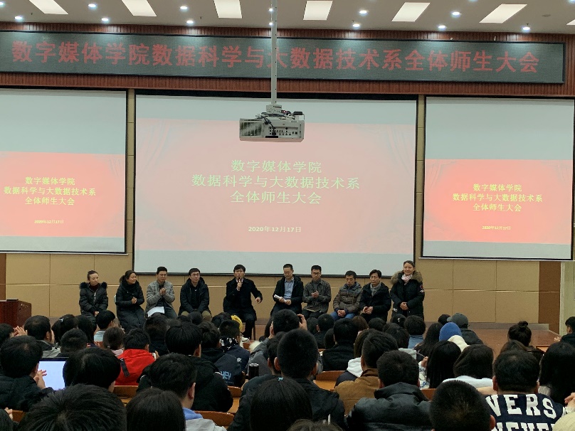大数据系全体教师依次进行交流并表示,数据科学与大数据技术专业是一个新专业,是一门综合学科,需要学习很多知识,希望同学们能够善于思考,勤于实践,争取取得好成绩,师生携手共创大数据系的美好未来。