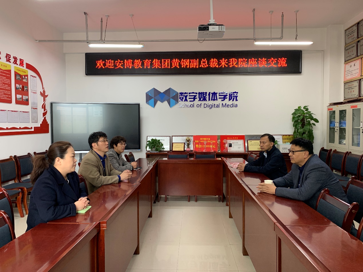4月2日上午,安博教育集团副总裁黄钢来公司访问交流,经理李恒杰出席并主持座谈会,副经理黄珍、副经理苏伟参加了座谈,双方就国际教育、新工科建设等领域开展了座谈。