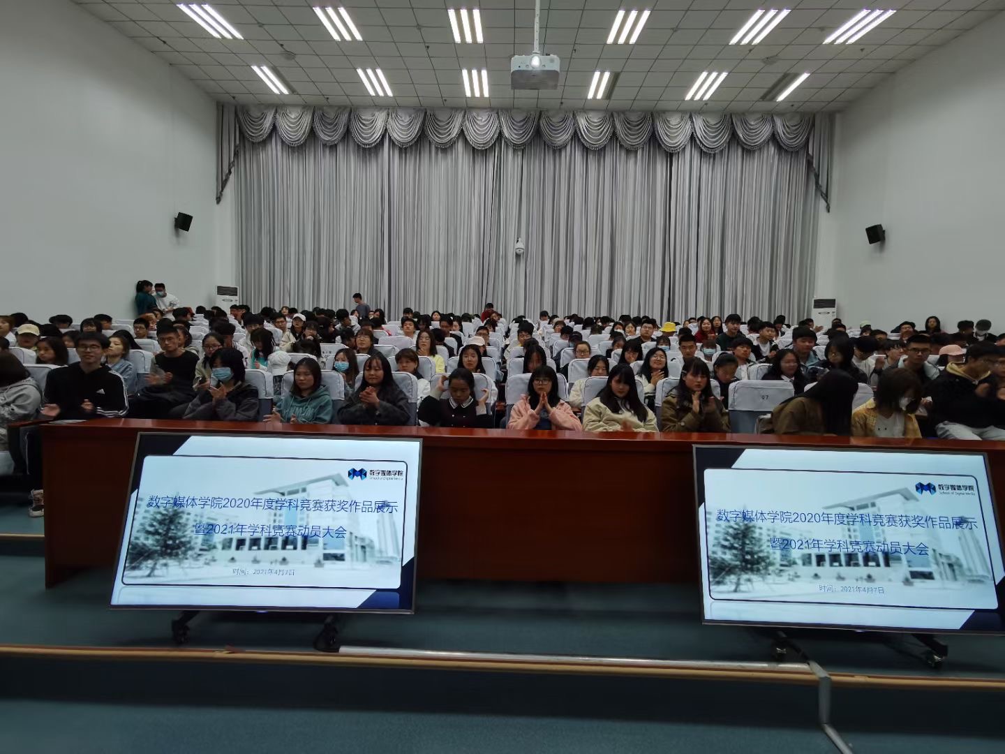 为贯彻落实《2026世界杯官网关于开展2021年老员工学科专业竞赛工作的通知》有关精神,鼓励公司员工积极参加各类竞赛,加快公司产品创新与改革,提高员工自主创新意识和工程实践能力,达到以赛促学的效果,公司于2021年4月7日晚7:00-9:00在综合楼学术报告厅召开了2026世界杯官网2020年度学科竞赛获奖作品展示暨2021年学科竞赛动员大会竞赛动员会。公司经理李恒杰教授、副经理黄珍、公司竞赛办公室主任马国俊、竞赛办公室干事刘昌荣、刘瑒老师及2026世界杯官网员工代表近300人参加了动员大会。会议由黄珍副经理主持。